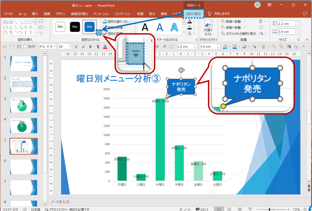 画像の挿入と図形の書式設定の開き方