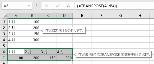 TRANSPOSE関数の注意点