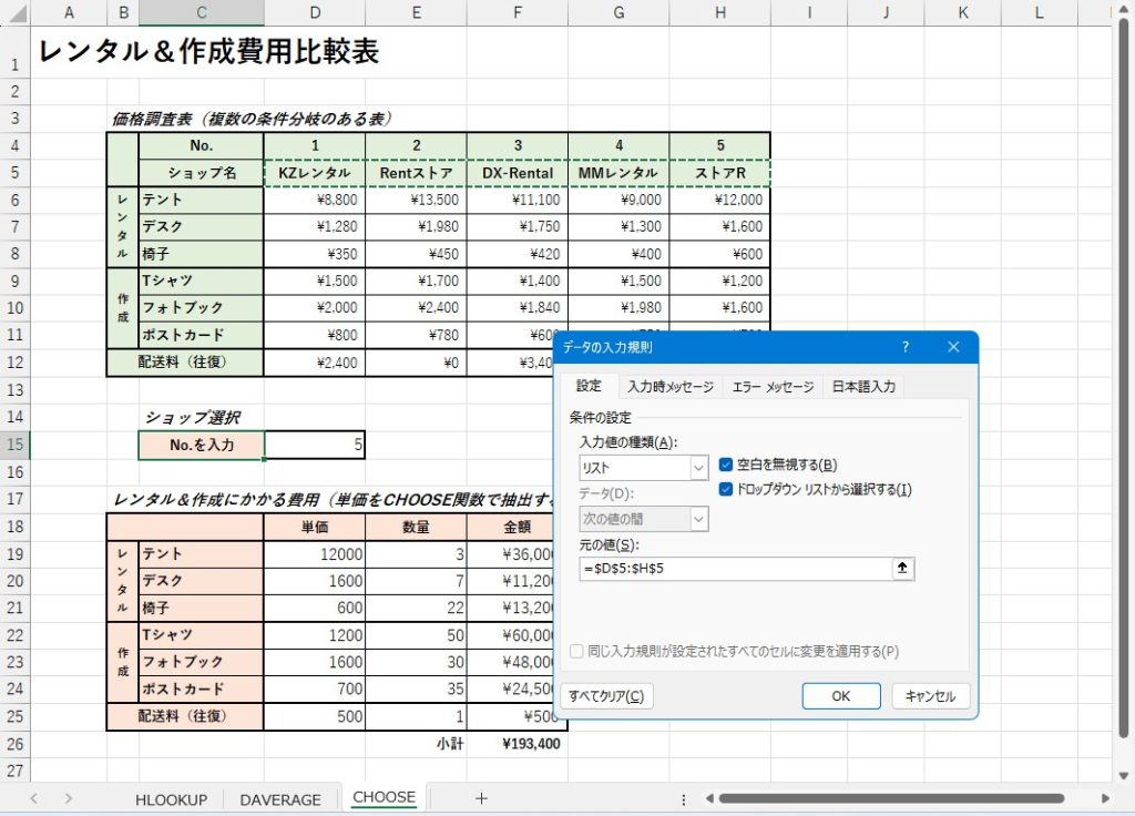 ExcelのCHOOSE関数:条件に応じて複数の選択肢から値を選択する方法