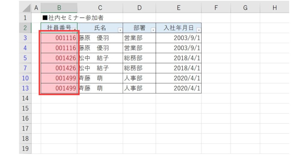 条件付き書式を利用した重複データの特定