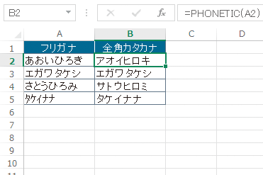Excelでひらがな・カタカナ変換方法:KATAKANA関数とHIRAGANA関数の使い方