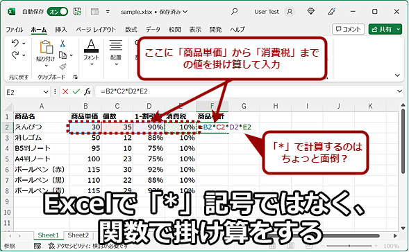 Excelでかけ算の方法:乗算演算子とPRODUCT関数の使い方