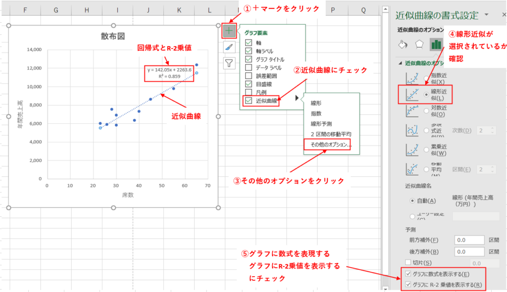 Excelで回帰直線を求める方法:グラフ作成から分析までのステップ