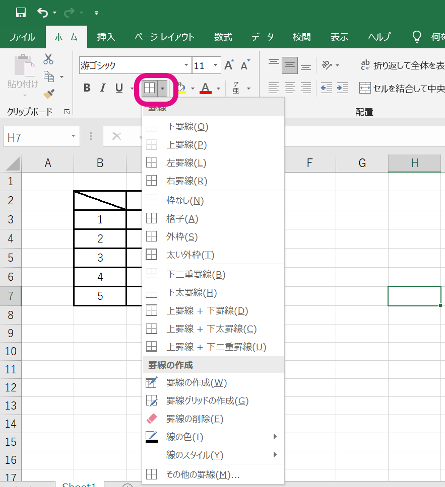 罫線の設定