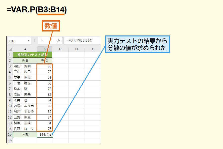 VAR.P関数とVAR.S関数の使い方はどうですか?
