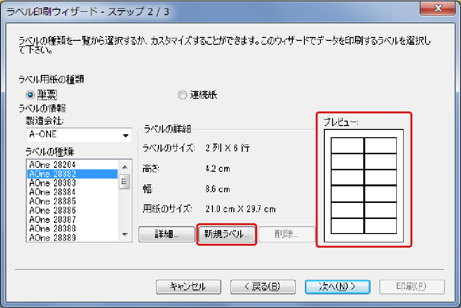 ラベルテンプレートの選択と設定