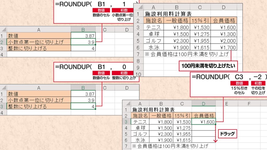 ラウンドアップ関数の使い方